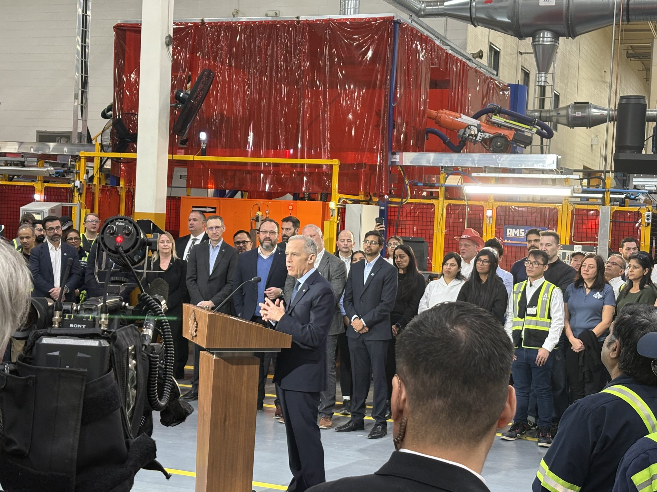 Photos: (Left to Right) Prime Minister Mark Carney announcing new measures for Canada’s auto industry; EMC COO Maureen Shuell with Minister of Environment and Climate Change, Julie Dabrusin; Maureen Shuell with Dominique O’Rourke, Chair of the Liberal Auto Caucus